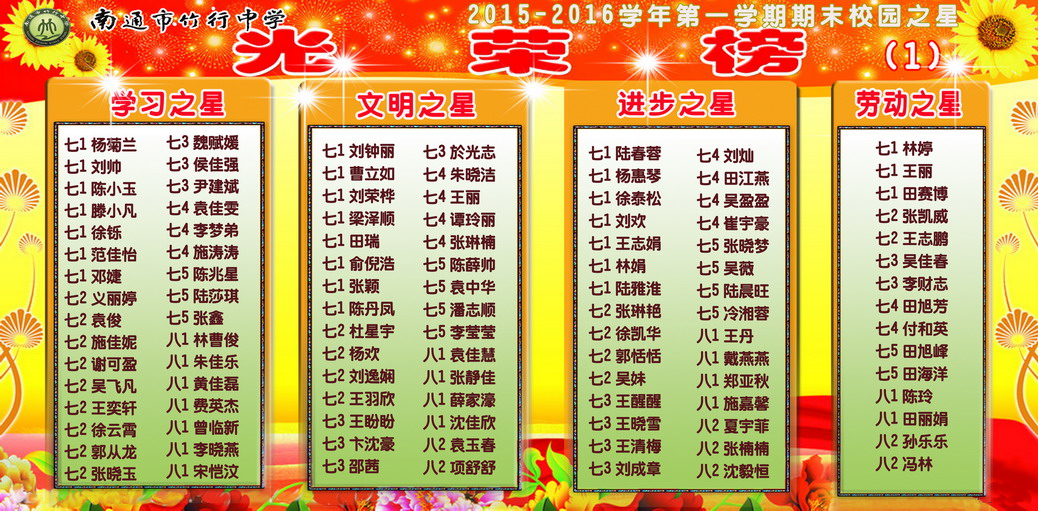 2015-2016学年第一学期七年级期末校园之星