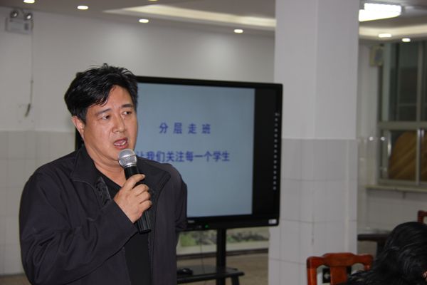 姚敏副校长做了月考总结。她强调:一是班级各科教师应该打整体仗,各备课组集体合作,才能创造共赢的局面。二是部分学科成绩不理想,教师应倾听学生的心声,找到问题所在,努力找出改进的方法。三是班主任应团结各科教师,搞好班级管理。