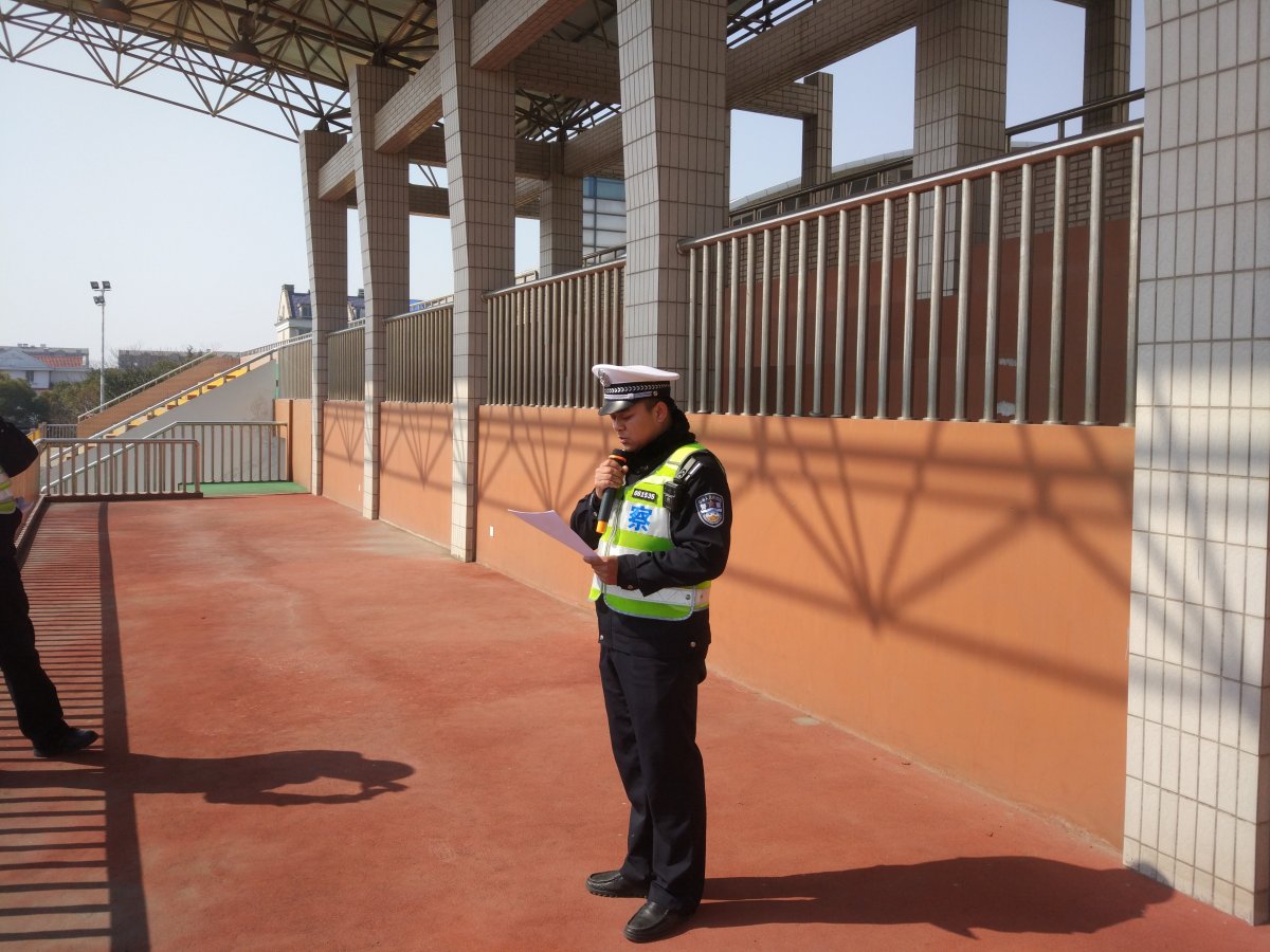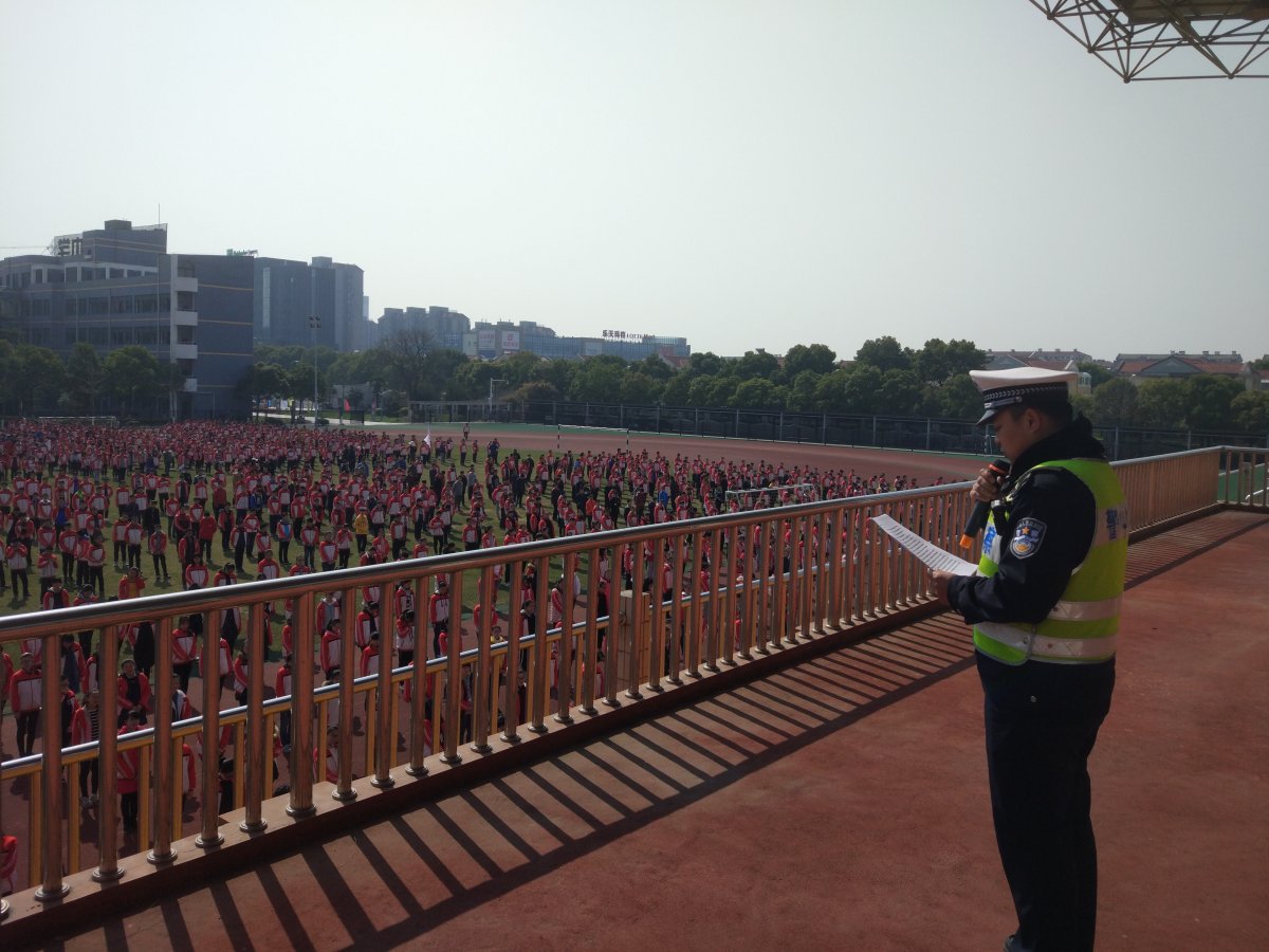3月27日是第22个“全国中小学安全教育日”,我校邀请开发区交巡警五大队陶警官,利用国旗下讲话给全校师生宣传交通安全知识。陶警官结合我校实际,对学生在乘公交、过马路、骑自行车等方面进行了安全知识教育,以鲜活的事例分别从提高安全意识,增加防范措施,普及安全知识,提高避险能力等四个方面向广大师生做了指导性讲话,提高了广大同学的交通安全意识。同时陶警官也要求我们同学要通过“小手拉大手”,提醒自己父母家人、亲戚朋友自觉遵守交通规则,抵制危险驾驶行为。
