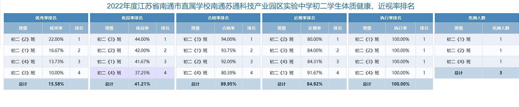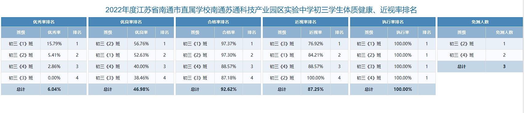 南通市苏锡通园区实验中学2022-2023学年学生体质健康监测度四率公示