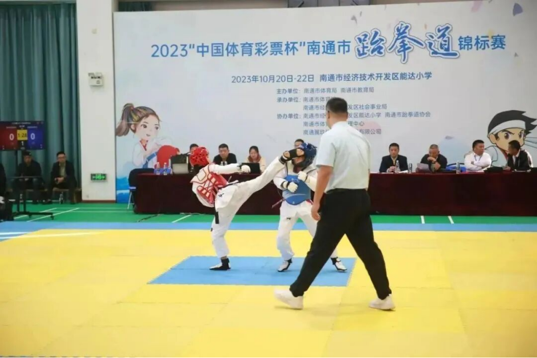10月20日至22日,由南通市体育局、南通市教育局主办的2023年南通市青少年跆拳道锦标赛在南通开发区实验小学教育集团能达校区举行,共有来自南通市各县(市、区)的8支代表队、130余名运动员齐聚一堂,共享跆拳盛世。
