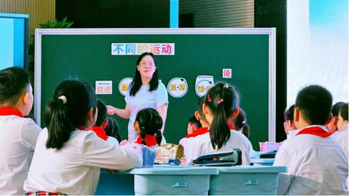第三节课由崇川区八一小学的杨佳佳老师执教三年级《不同的运动》。本节课通过观察、描述和模拟活动,引导学生探索生活中物体的运动形式。学生通过“我说你做”游戏和动手实践,生动理解了不同运动的特点,并学会用语言准确描述。课堂注重互动与生活联系,既培养了观察力和表达力,也激发了科学兴趣,达到了在玩中学、学中思的目标。