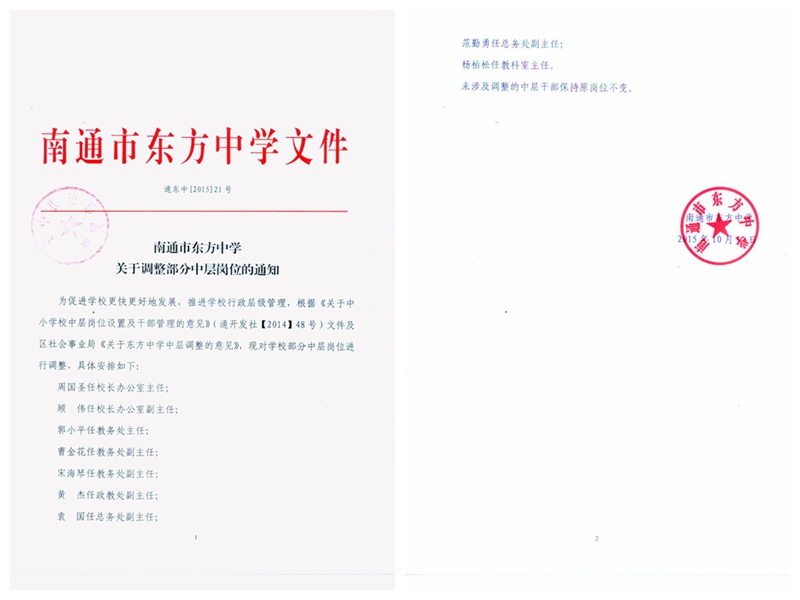 关于调整部分中层岗位的通知