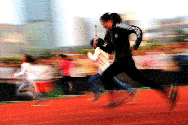 友谊接力(中为二15班韩国学生柳知厚 袁俊摄)